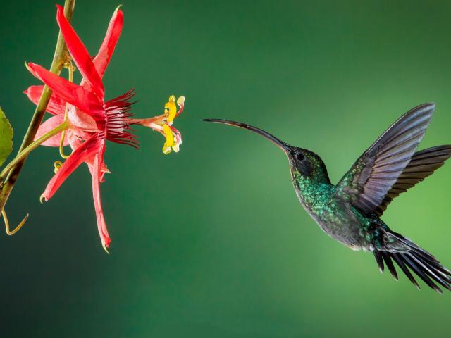 Обои Маленькая птичка колибри пьет нектар с цветка