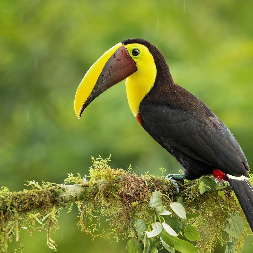 Обои Большой тукан сидит на ветке дерева под каплями дождя