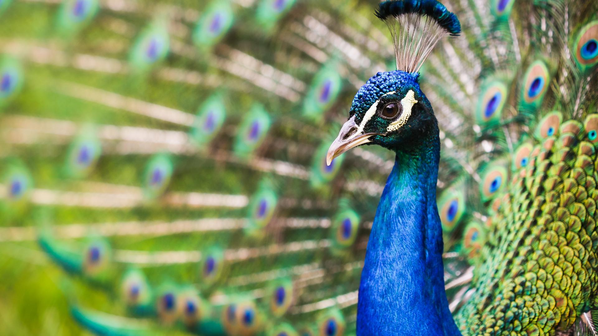 Обои Голова голубого красивого павлина крупным планом