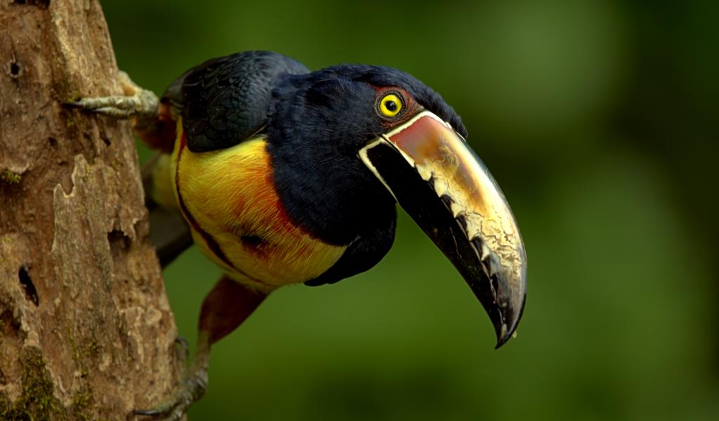 Обои Птица тукан с большим клювом сидит на дереве