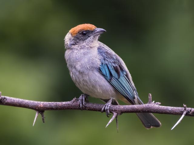 Обои Маленькая птичка сидит на ветке дерева с шипами