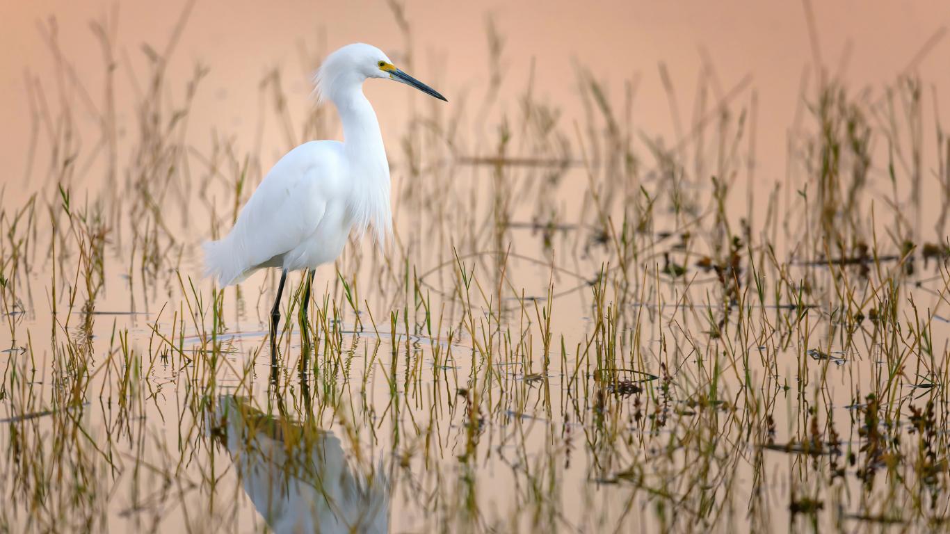 Обои Большая белая цапля в воде на охоте
