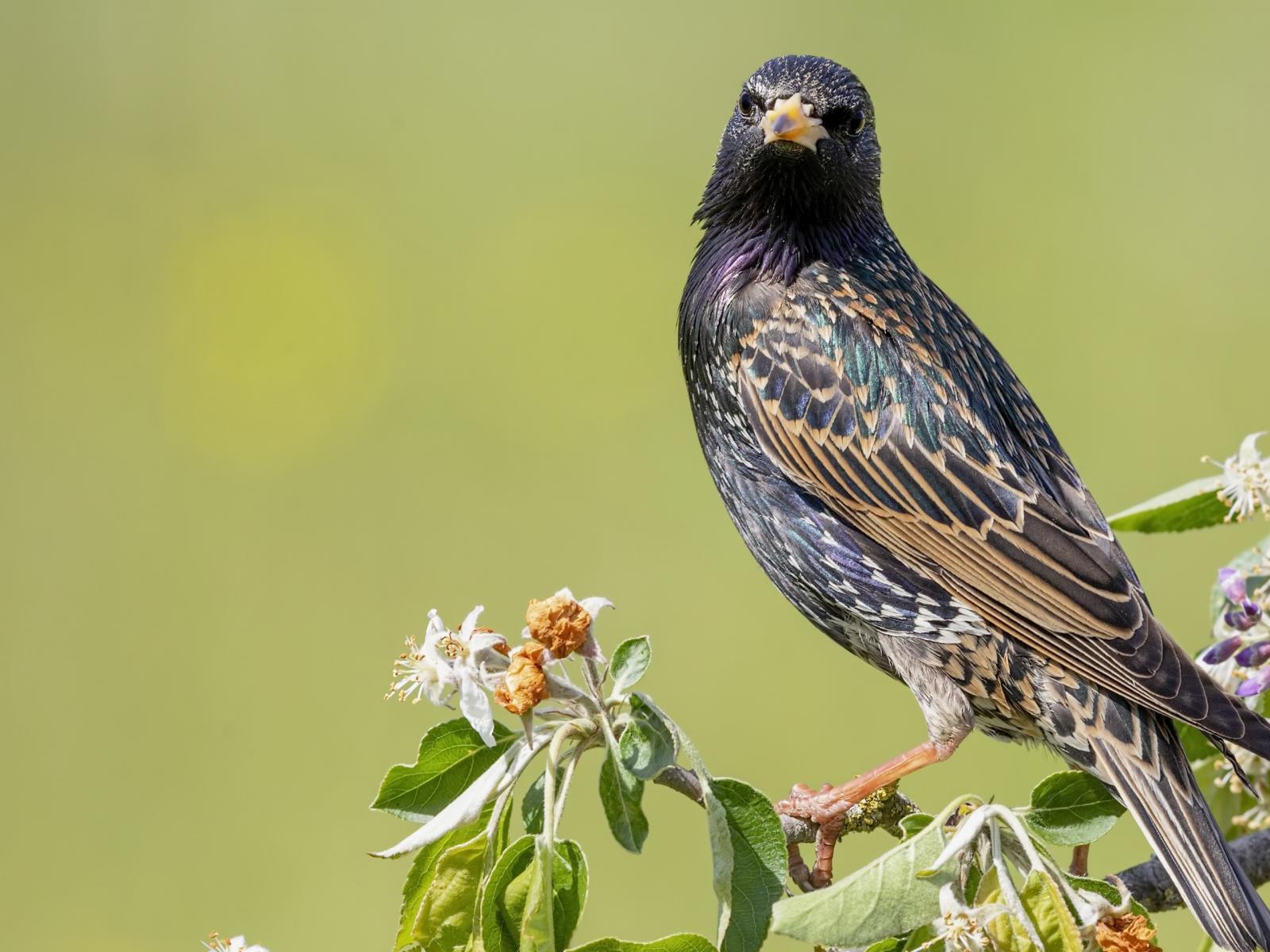 Обои Большой скворец сидит на ветке дерева