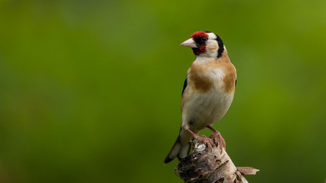 Обои Маленькая птичка сидит на ветке дерева на зеленом фоне