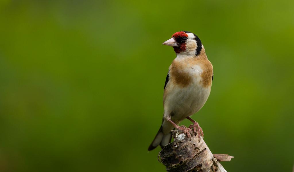 Обои Маленькая птичка сидит на ветке дерева на зеленом фоне