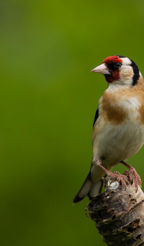 Обои Маленькая птичка сидит на ветке дерева на зеленом фоне