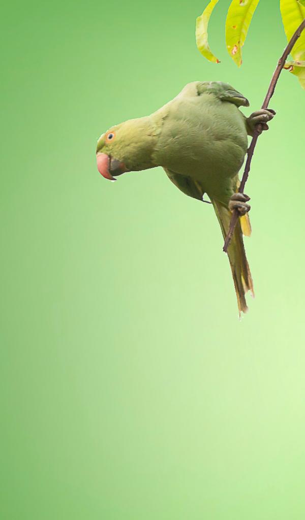 Обои Маленький зеленый попугай сидит на ветке