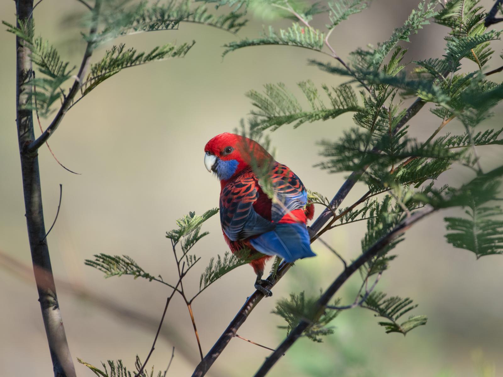 Обои Попугай Красная розелла на ветке дерева