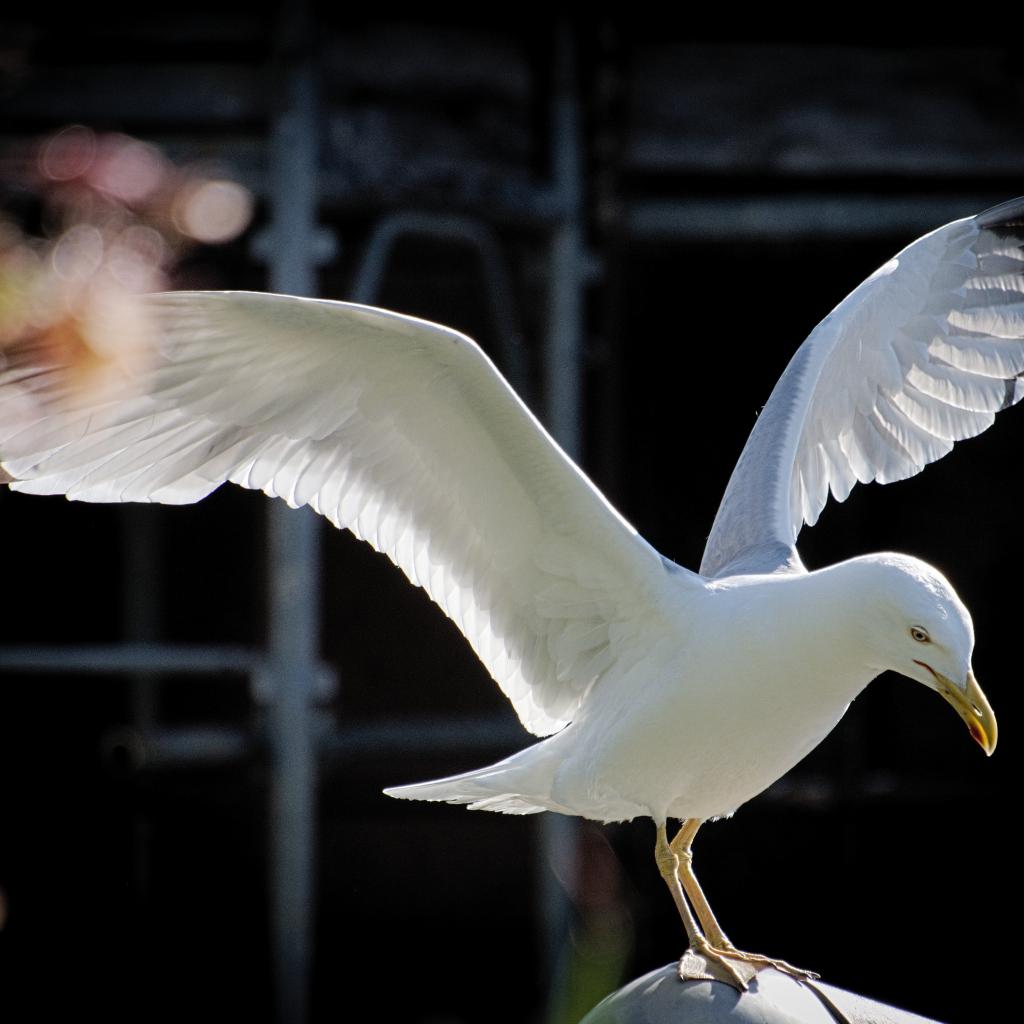 Обои Большая белая чайка сидит на камне