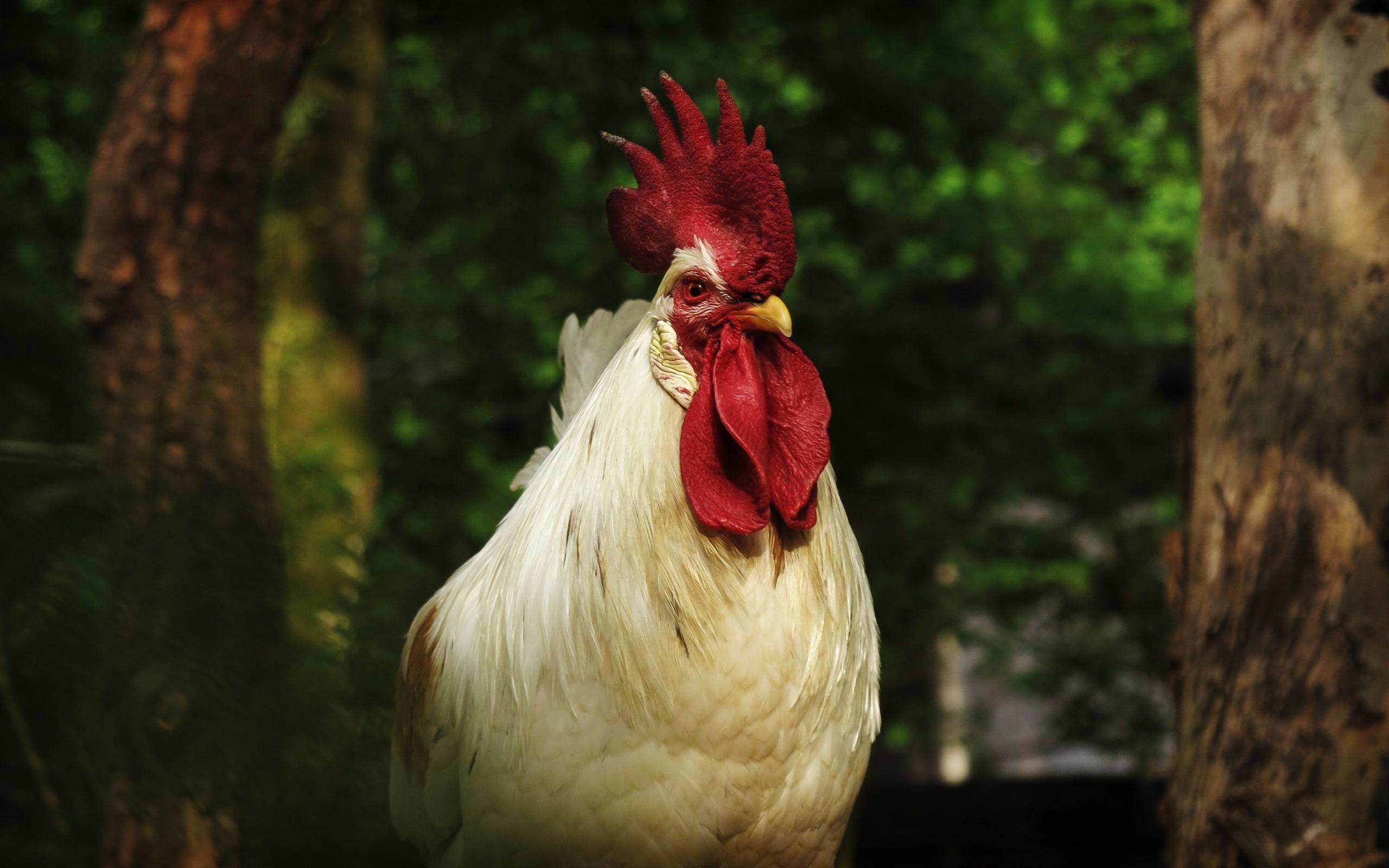 Обои Большой белый домашний петух с красным гребнем