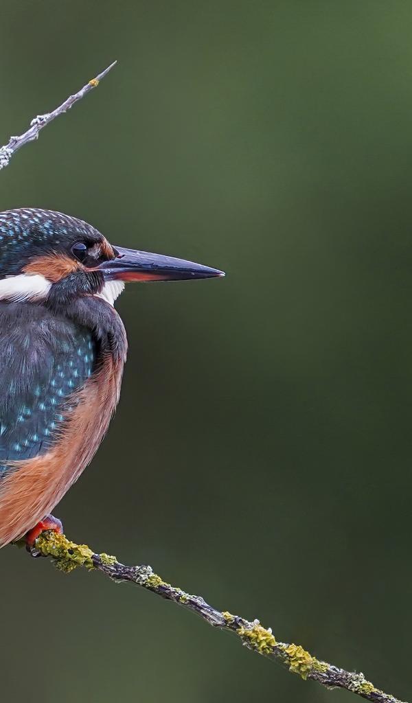 Обои Красивая птица зимородок с острым клювом сидит на ветке