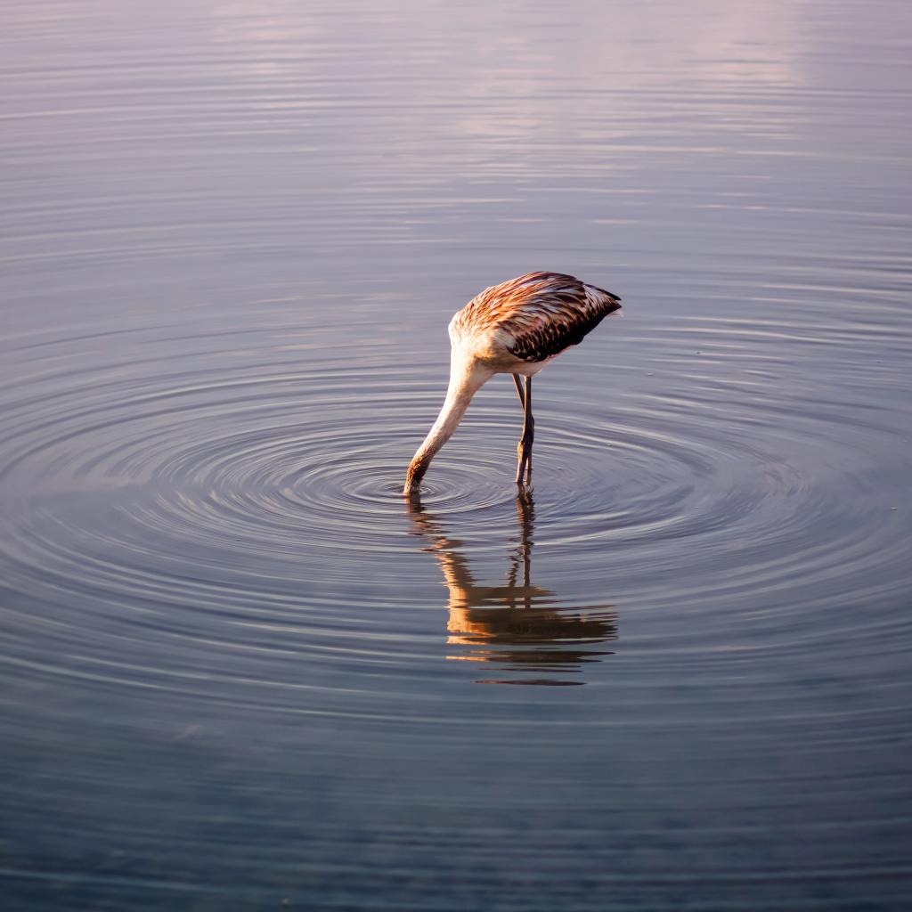 Обои Птица опустила голову в воду озера
