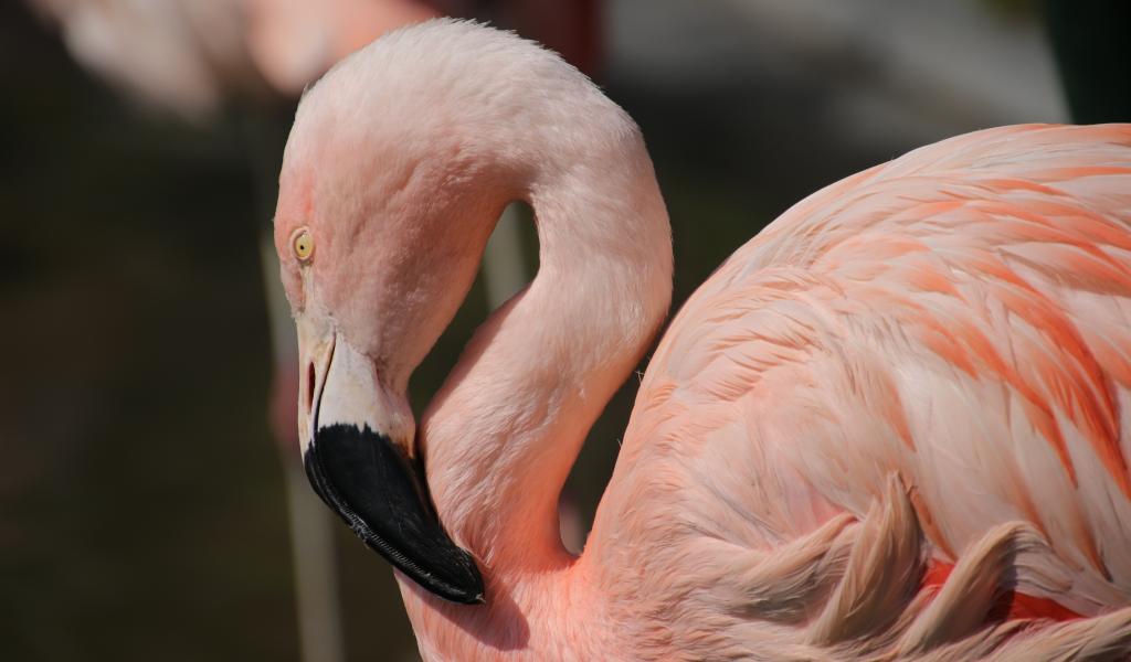 Обои Розовый фламинго с черным клювом крупным планом