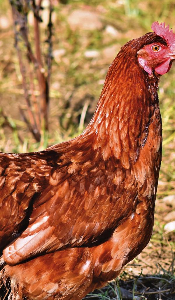 Обои Коричневая домашняя курица на улице