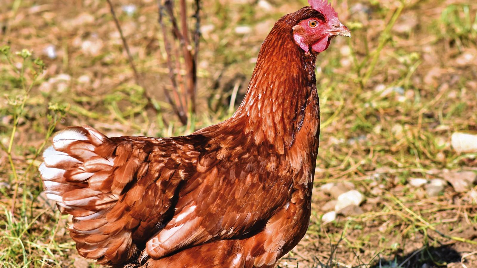 Обои Коричневая домашняя курица на улице