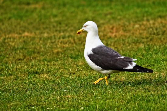 Обои Большая чайка гуляет по зеленой траве