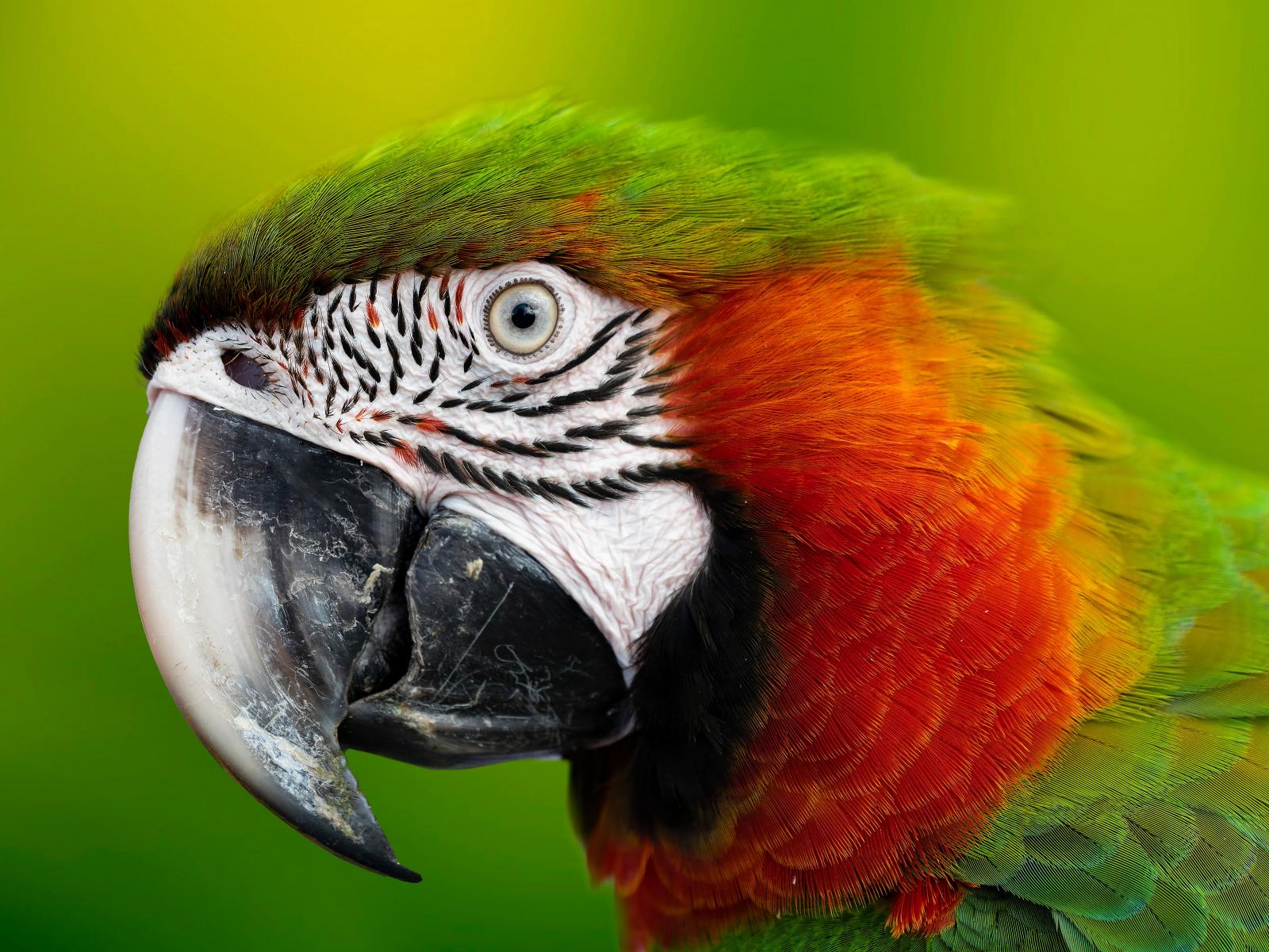 Обои Голова зеленого попугая ара с острым клювом