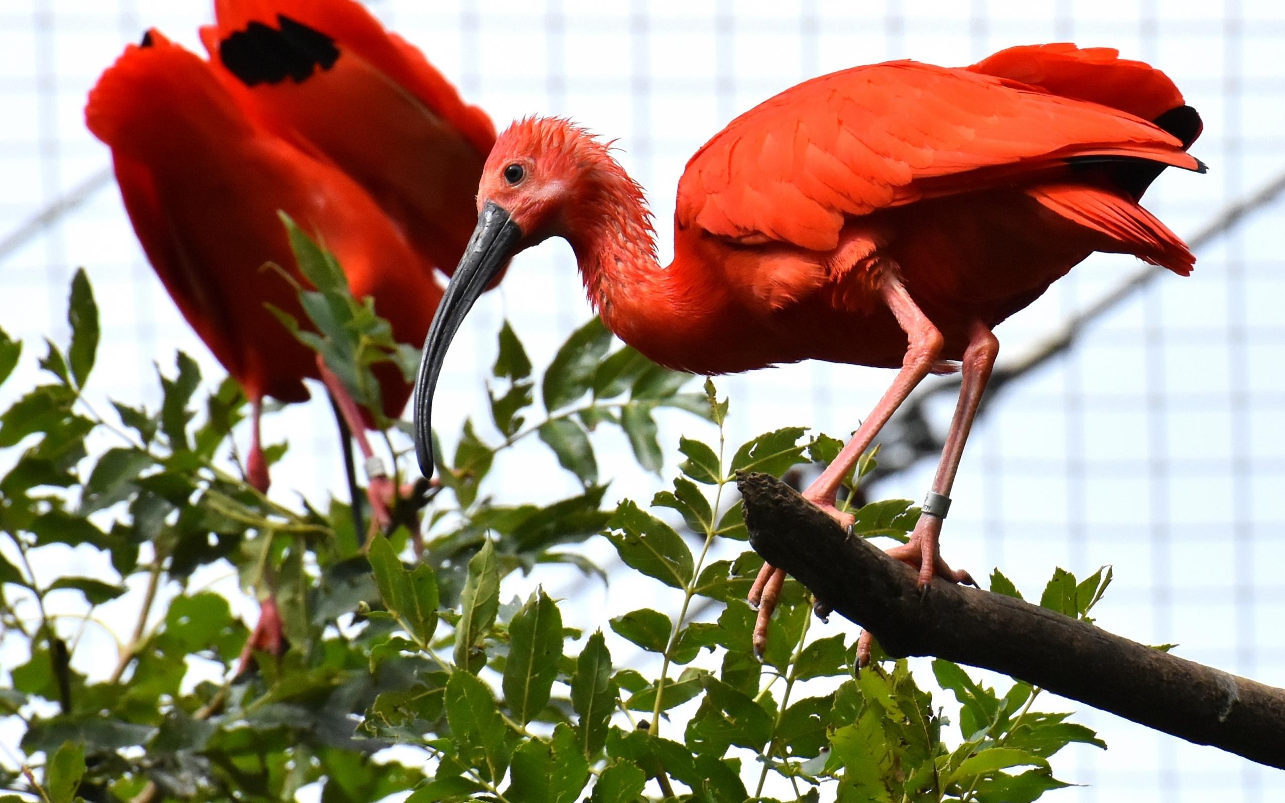 Обои Красная птица ибис сидит на ветке дерева