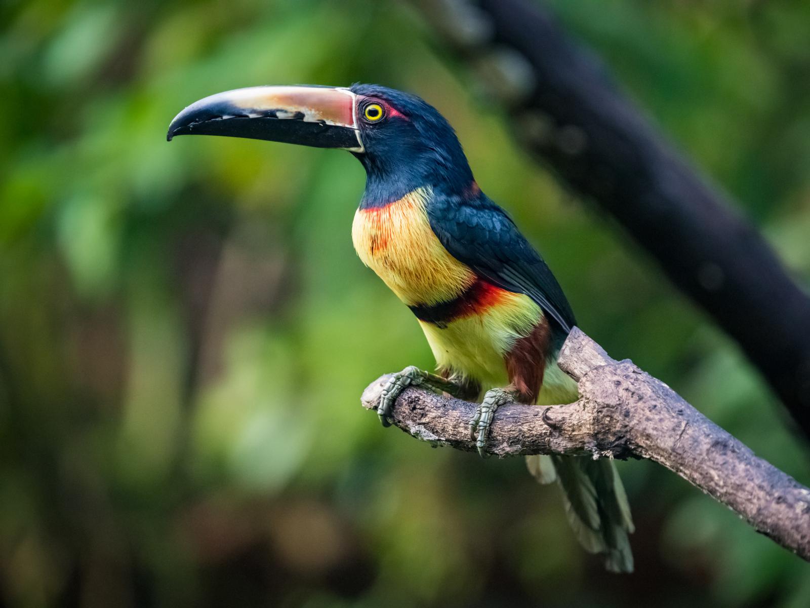 Обои Ошейниковый арасари сидит на ветке дерева