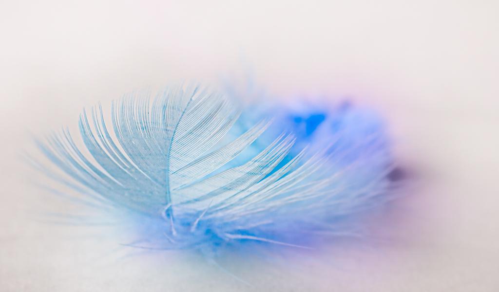 Обои Легкое голубое перо на белом фоне