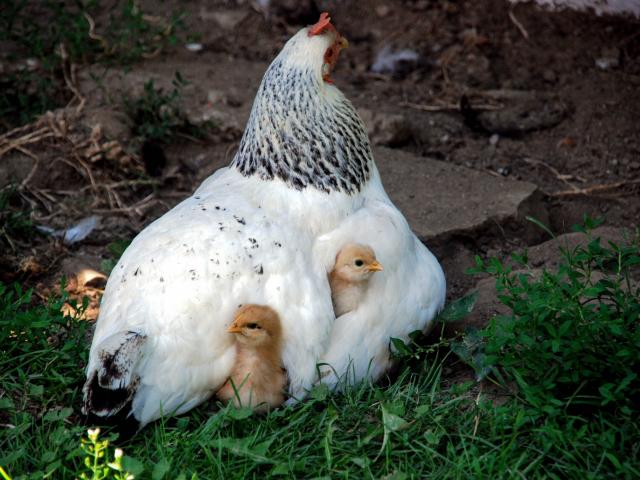 Обои Курица наседка греет маленьких цыплят