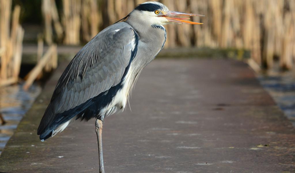 » Обои Серая цапля стоит на одной ноге