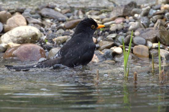 Обои Черный дрозд сидит на покрытых инеем ветках