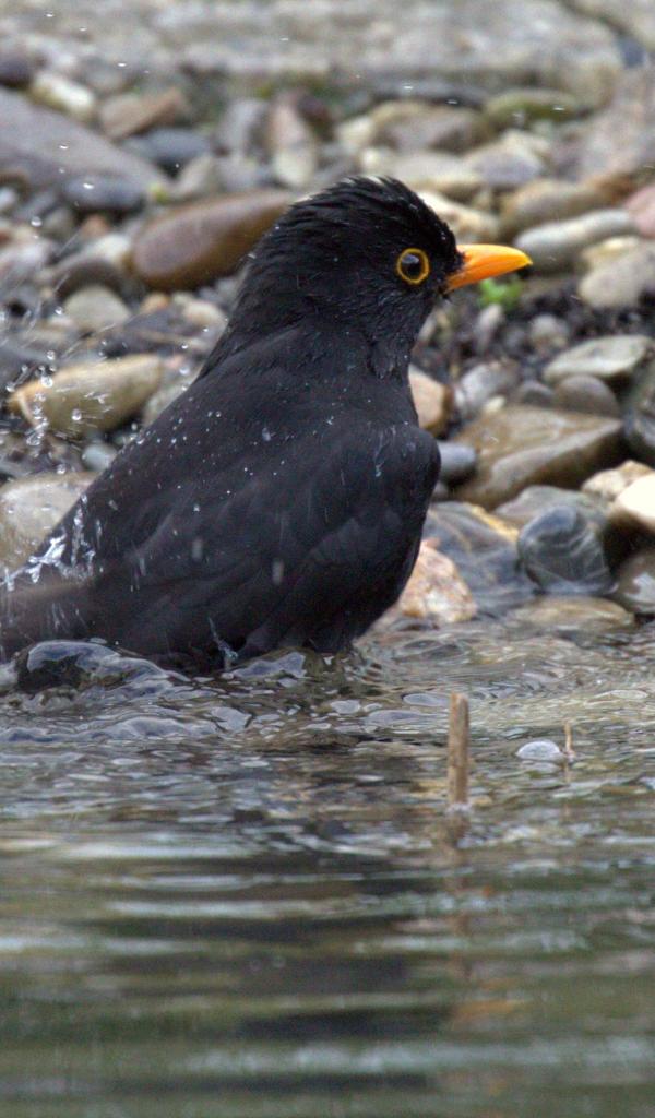 Обои Черный дрозд сидит на покрытых инеем ветках