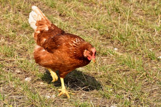 Обои Коричневая домашняя курица гуляет по траве