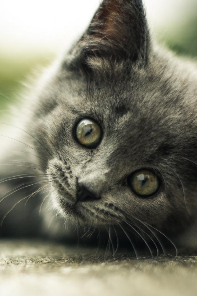 Обои Взгляд маленького серого котенка