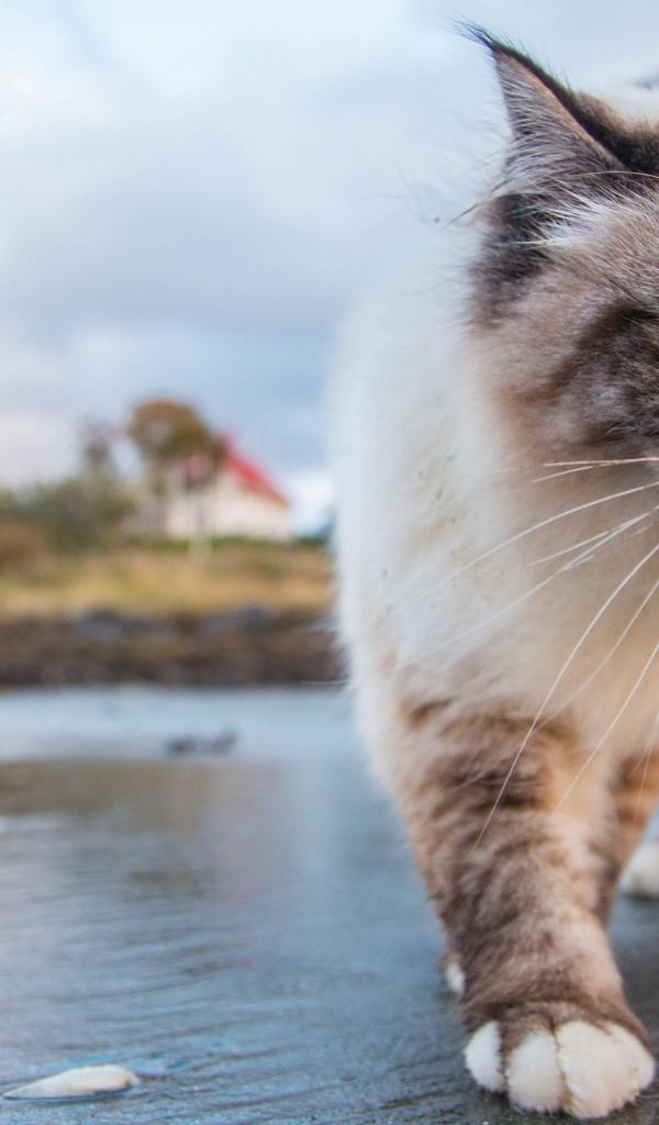 Обои Красивый голубоглазый кот идет по мокрой земле