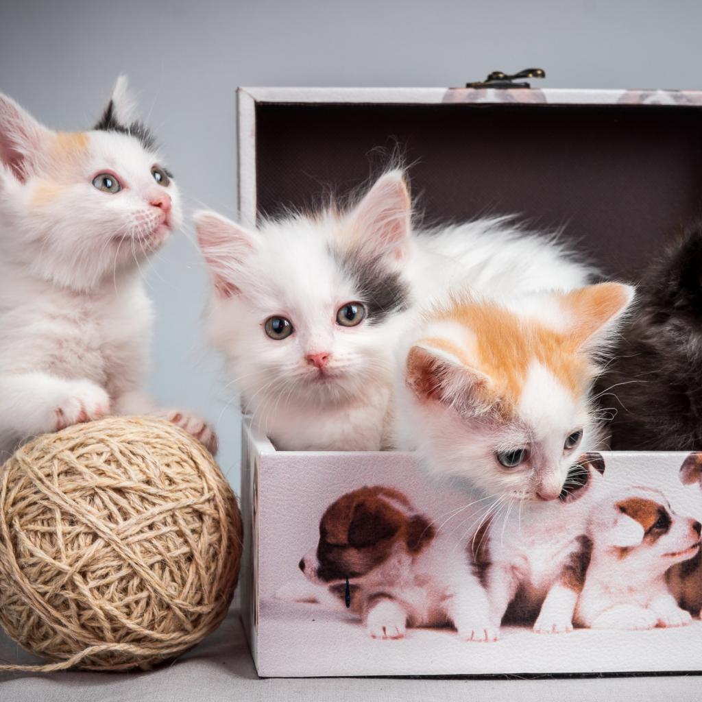 Обои Маленькие милые котята играют в шкатулке