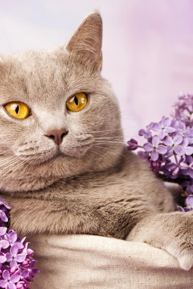 Обои Белая чашка с какао на розовом фоне с цветами сирени