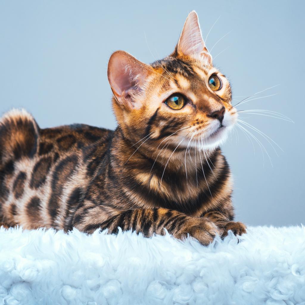 Обои Красивая бенгальская кошка смотрит заинтересованным взглядом