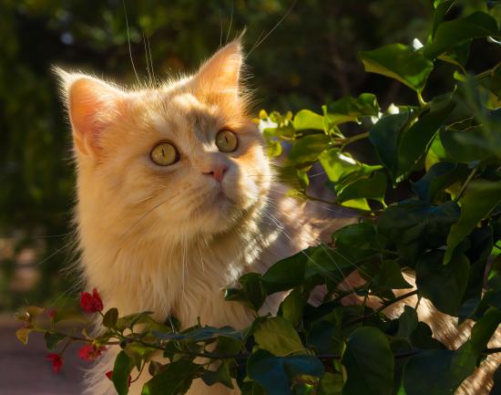 Обои Рыжий кот лежит на земле в лучах осеннего солнца