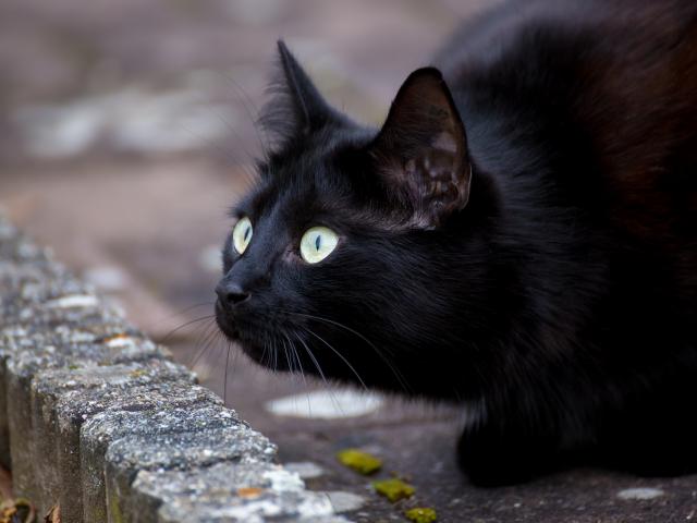 Обои Черный зеленоглазый кот с удивленным взглядом