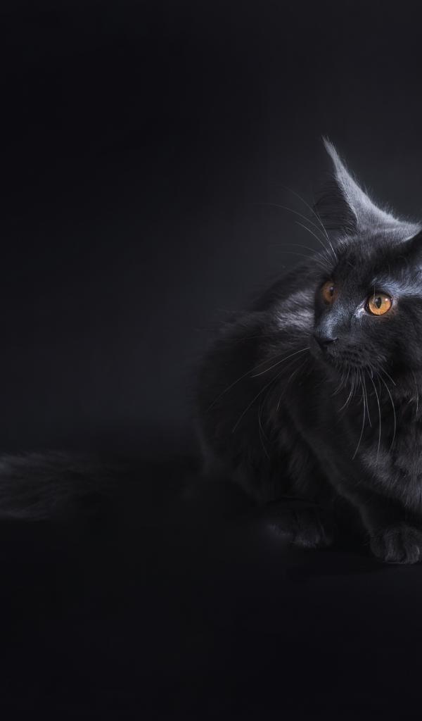 Обои Кот породы мейн кун на сером фоне