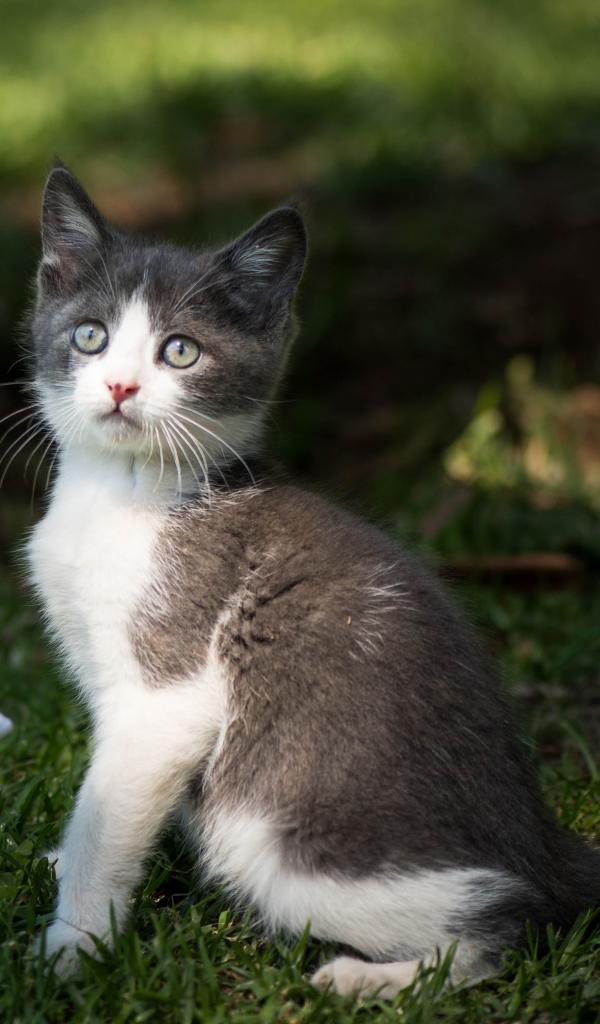 Обои Маленький котенок играет с игрушкой на зеленой траве