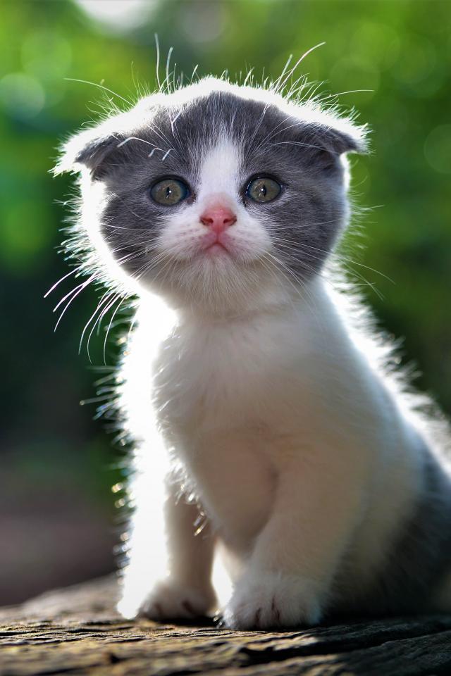 Обои Маленький вислоухий серо-белый котенок