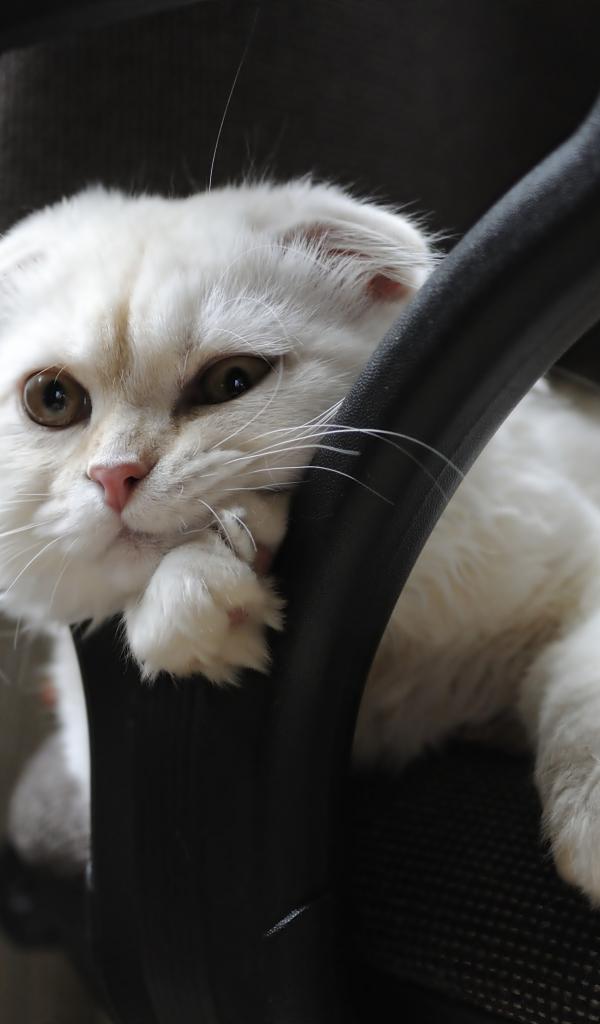 Обои Белая шотландская вислоухая кошка лежит в кресле