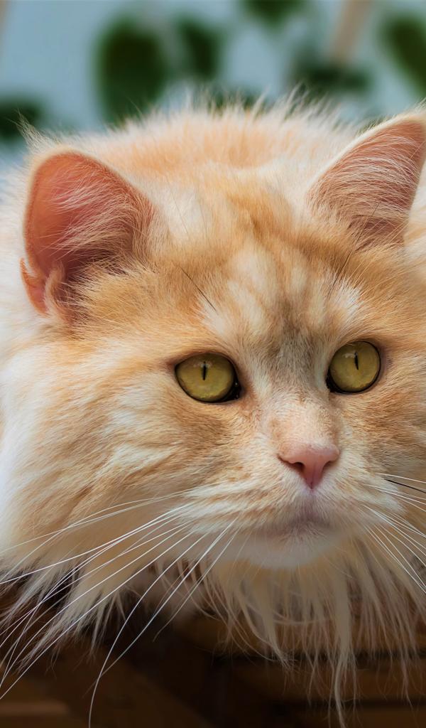 Обои Красивый рыжий пушистый кот лежит на желтой траве