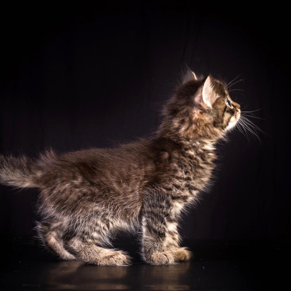 Обои Маленький пушистый серый котенок на черном фоне