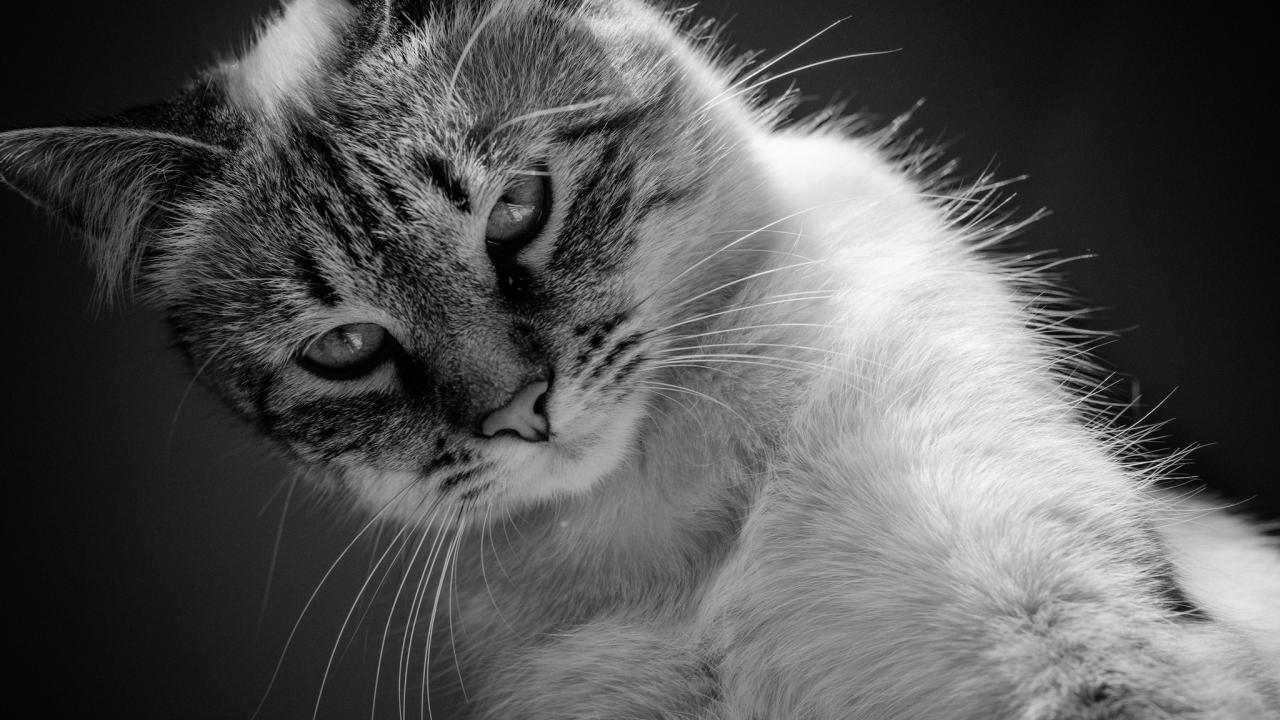 Обои Красивый шотландский вислоухий кот, черно-белое фото