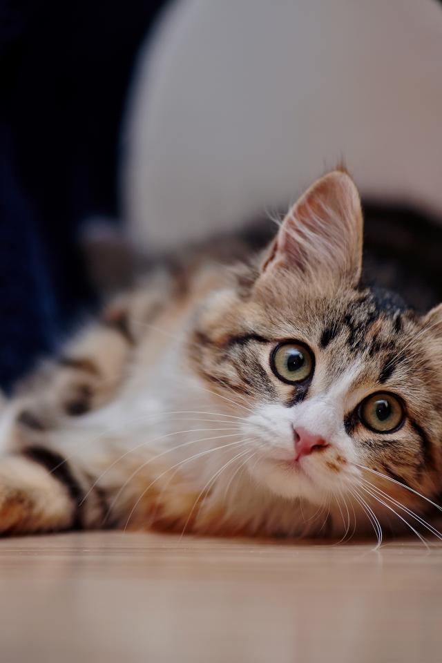 Обои Внимательный взгляд серого кота
