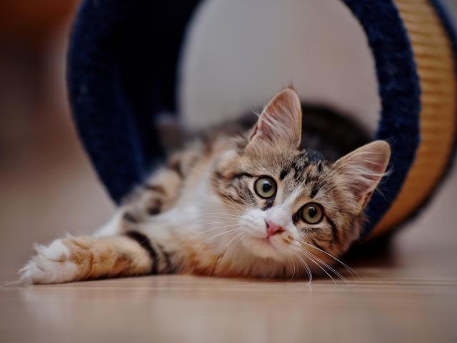 Обои Внимательный взгляд серого кота