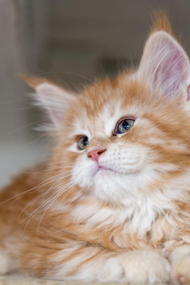 Обои Рыжий пушистый котенок мейн кун