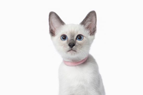 Обои Красивый голубоглазый породистый котенок на белом фоне
