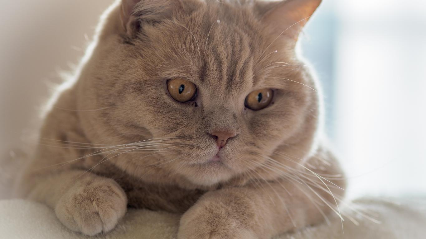 Обои Рыжая британская короткошёрстная кошка лежит на диване