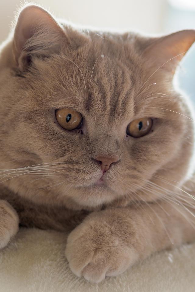 Обои Рыжая британская короткошёрстная кошка лежит на диване
