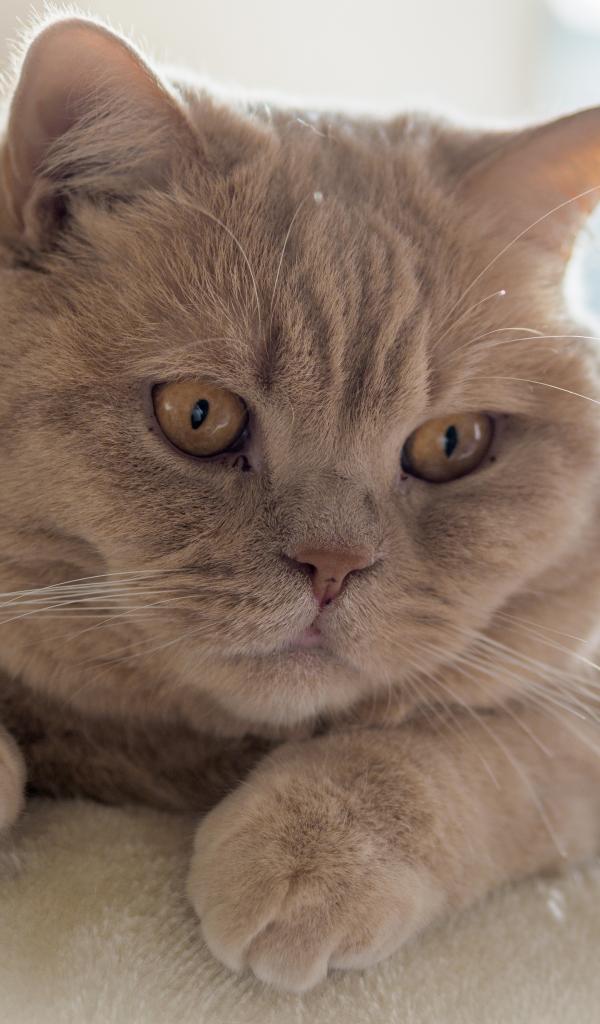 Обои Рыжая британская короткошёрстная кошка лежит на диване